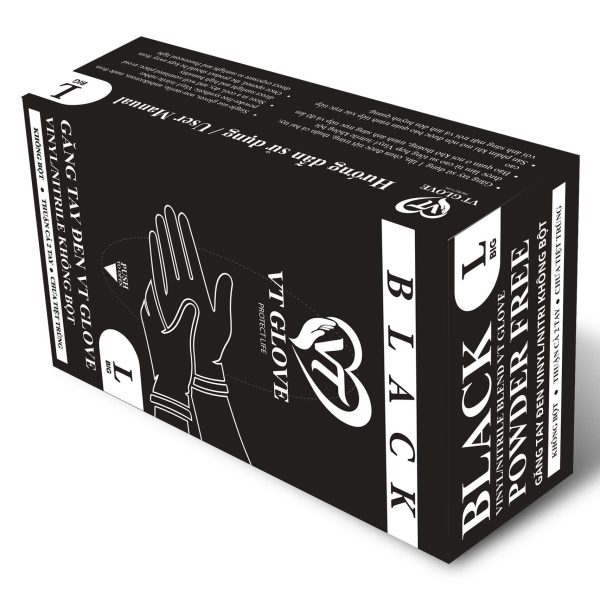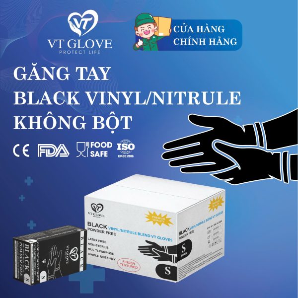 Găng Tay Đen Vinyl/Nitrile Blend Không Bột – VT GLOVE
