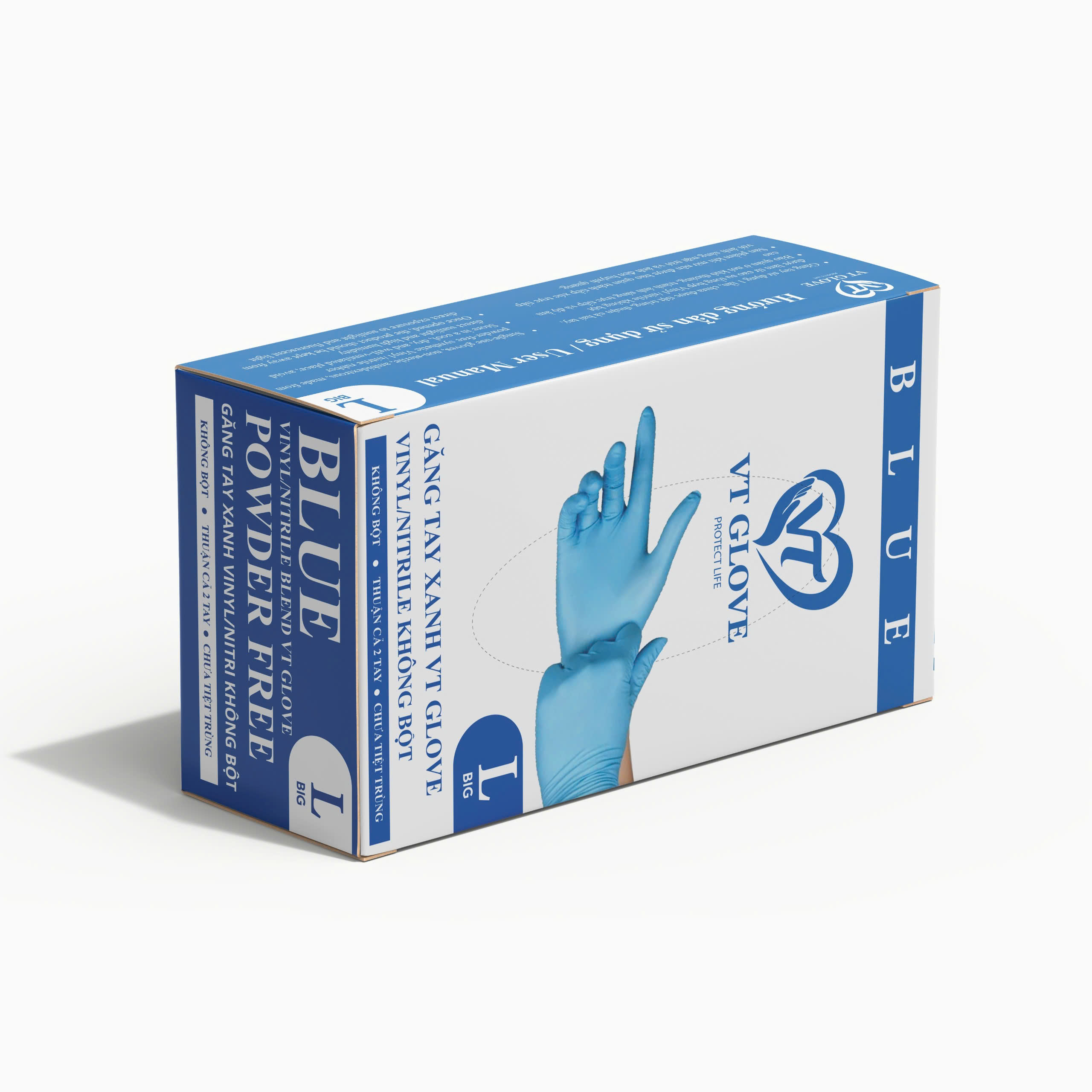 – Tên sản phẩm: Găng Tay Xanh Vinyl Nitrile Blend Không Bột – VT GLOVE