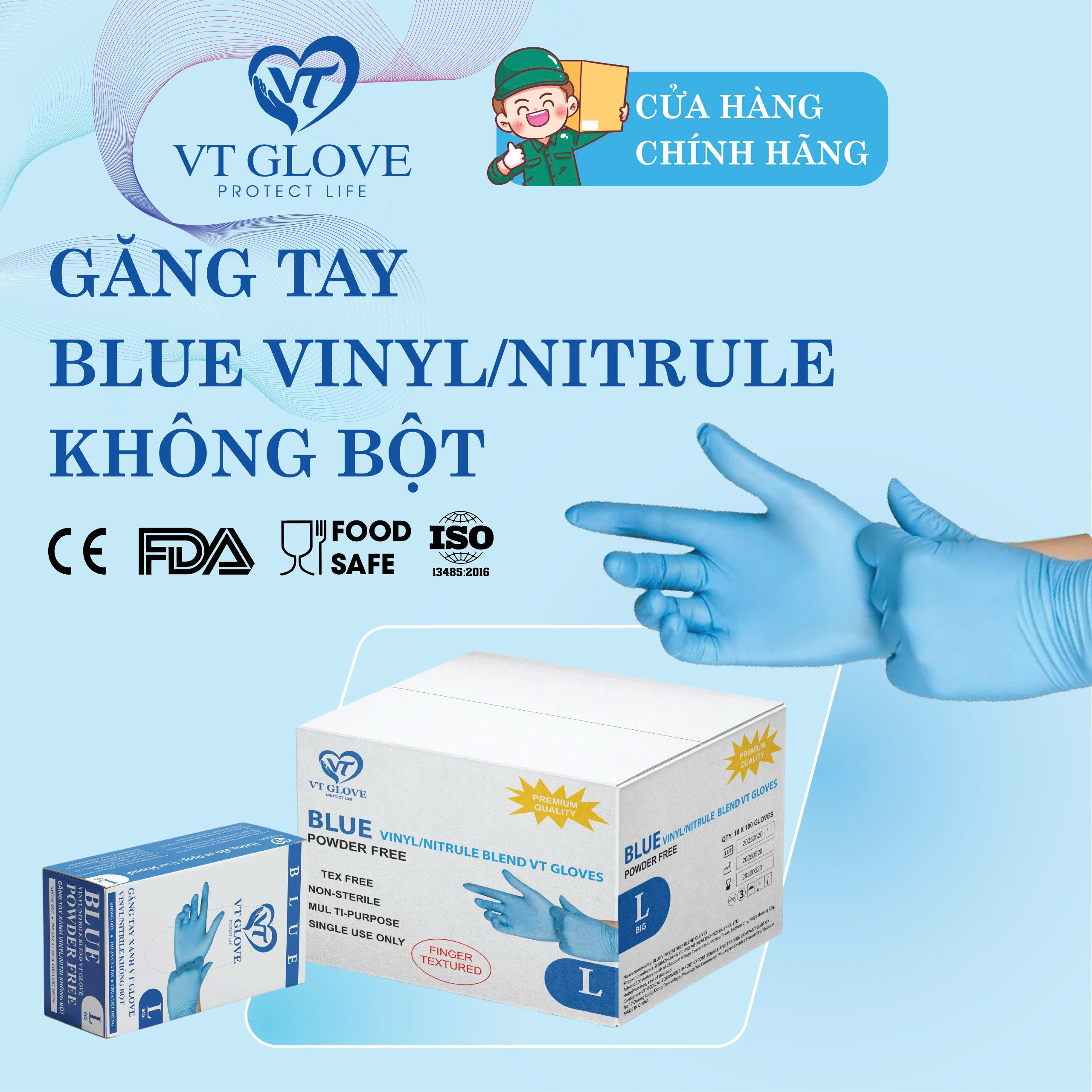 Găng Tay Xanh Vinyl/Nitrile Blend Không Bột – VT GLOVE